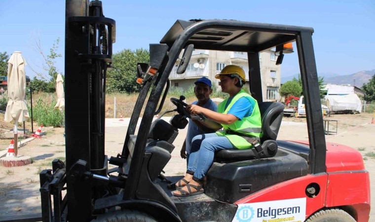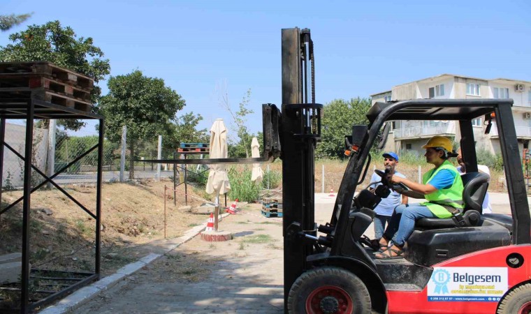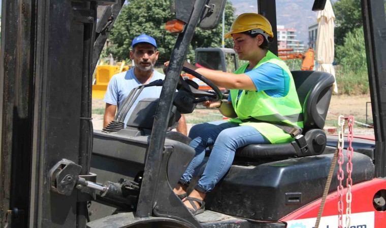 Aydın’ın Söke ilçesinde yaşayan 37 yaşındaki Zeynep Şimşek, ilçenin ilk kadın forklift operatörü olmak için geldiği Belgesem Mesleki Belgelendirme ve İş Makineleri Sürücü Eğitim Kursu’nda adeta erkeklere taş çıkartıyor. Kadınların her işi yapabileceğini ifade eden Şimşek, kullandığı forklift ile “kadın isterse yapar” sözünü de kanıtlıyor.