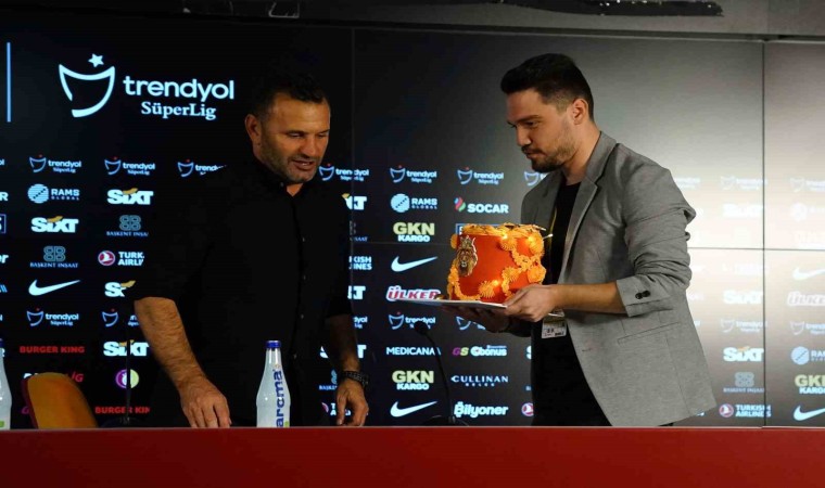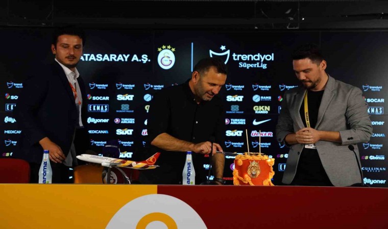 Trendyol Süper Lig’in 9. haftasında Galatasaray evinde karşılaştığı Beşiktaş’ı 2-1 mağlup etti. Maçın ardından geçtiğimiz günlerde 50. yaşına giren Galatasaray Teknik Direktörü Okan Buruk’a basın mensupları tarafından sürpriz doğum günü organizasyonu yapıldı. Basın toplantısının bitmesinin ardından Buruk’a sarı-kırmızı pasta hediye edildi. Okan Buruk pastadaki mumları üfledikten sonra basın mensuplarıyla hatıra fotoğrafı çektirdi.