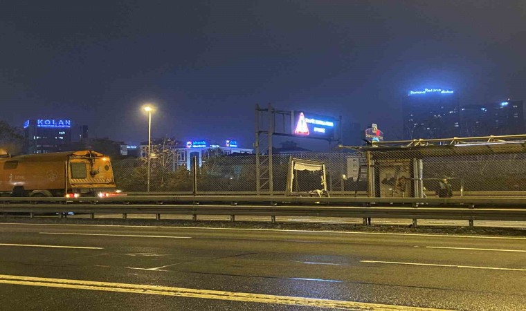Reklam panosu ve tenteden kopan parçalar, durağa ve E-5 Karayolu’na fırladı. Kaza nedeniyle metrobüs seferleri kısa süreliğine durdurulurken İBB ekiplerinin kopan parçaları kaldırmasının ardından metrobüs seferleri normale döndü.