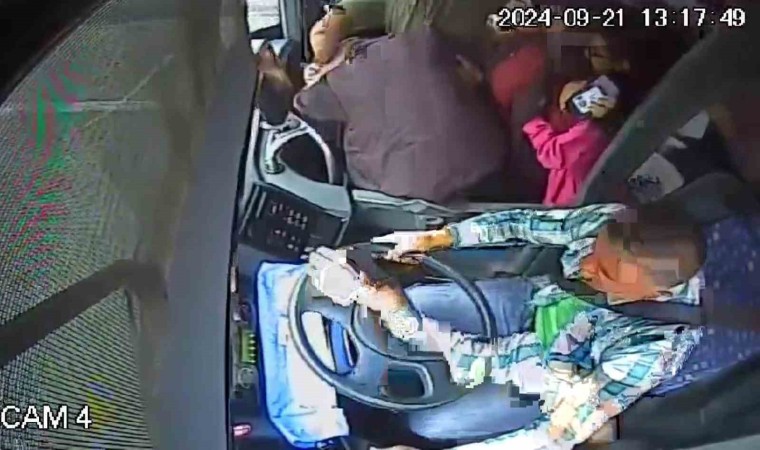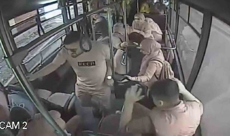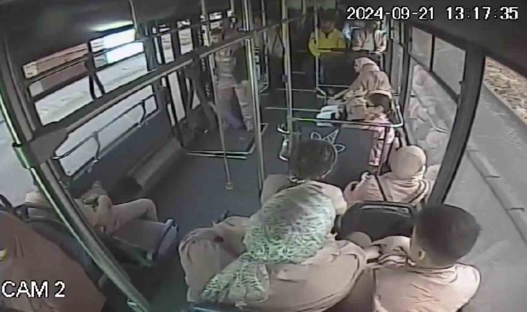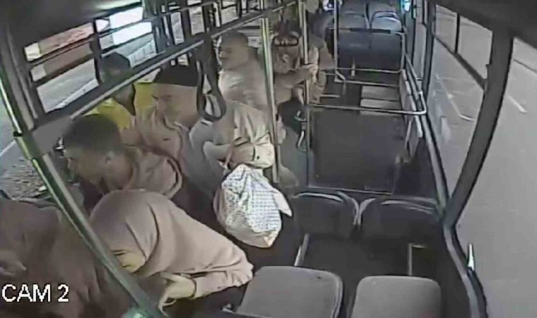O anlar ise özel halk otobüsünün güvenlik kameralarına yansıdı.