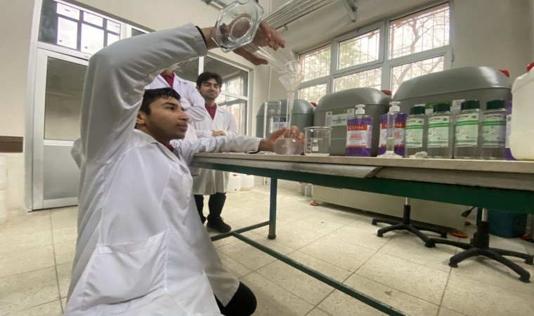 Kahramanmaraş’ta mesleki ve teknik lisesi kimya teknoloji bölümünde öğrenim gören öğrenciler, hem uygulamalı eğitim alıyor hem de bölgenin temizlik malzemesi ihtiyacını gideriyor.