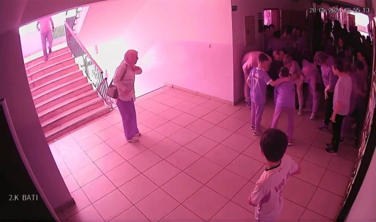 Samsun’da bir ortaokul müdürü, nefes borusuna kurabiye kaçan öğrenciyi Heimlich manevrasıyla kurtardı. O anlar, okulun güvenlik kamerasına yansıdı.