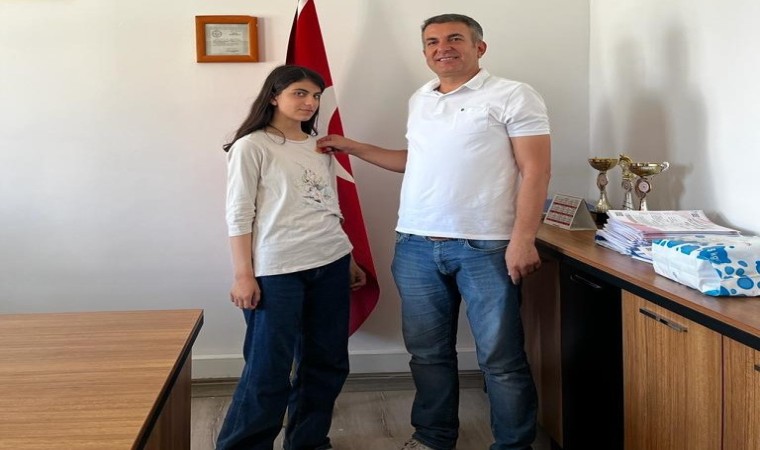 LGS’de tüm soruları cevaplayıp 500 tam puan alan Tuğsuz Aliağa Ortaokulu öğrencisi Mehlika Yılmaz, okul müdürü tarafından cumhuriyet altını ile ödüllendirildi.