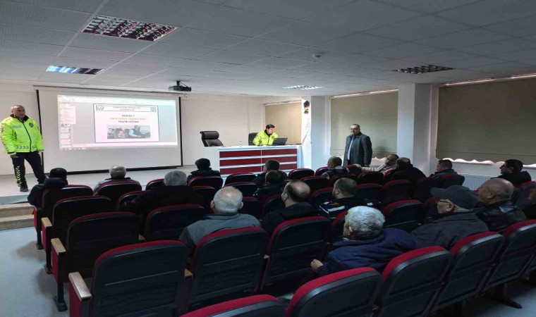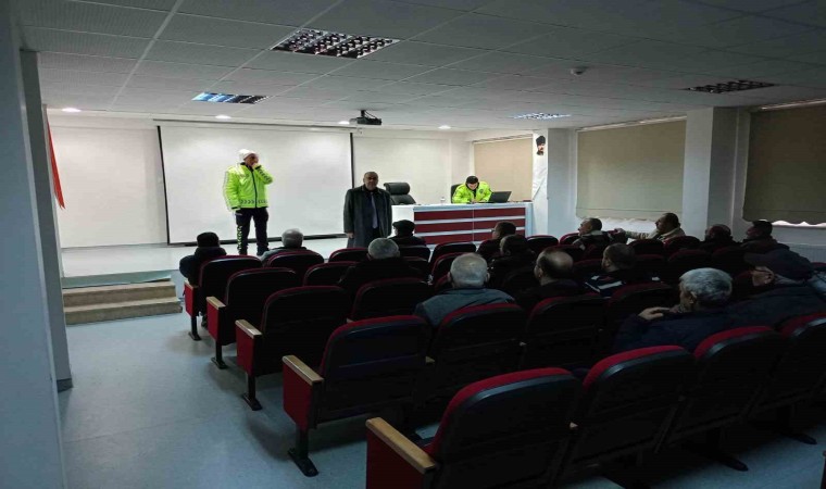 Halk Eğitim Merkezi Müdürlüğü Konferans Salonu’ndaki düzenlenen toplantıda İlçe Emniyet Müdürlüğü Trafik Tescil ve Denetleme Büro Amirliği ve Jandarma Trafik tarafından servis şoförlerine, Okul Servis Araçları Hizmet Yönetmeliği, Karayolları Trafik Kanunu, Yönetmelik kapsamında araçlarda bulundurulması gerekli olan yangın söndürme tüpü, Okul taşıtı yazısı, yanıp sönen dur levhası, öğrenci emniyet kemerleri, kış şartlarında araçlarını nasıl kullanmaları konusu, ehliyet, SRC belgesi vs konuları, okul taşıma faaliyetiyle ilgili sorumluluklar ile iletişim becerileri ve davranış kuralları konularında bilgiler verildi.
