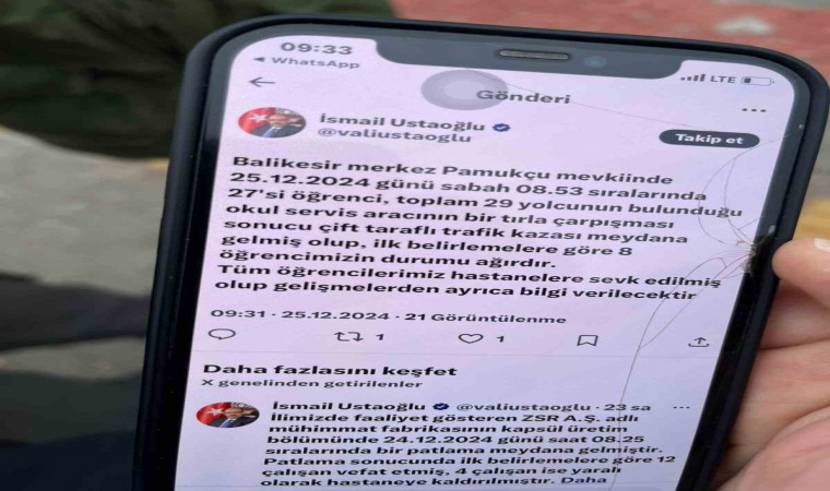 Balıkesir Valisi İsmail Ustaoğlu, kazanın ardından sosyal medyasından yaptığı ilk açıklamada yaralı 8 öğrencinin durumlarının ağır olduğunu bildirdi. Vali Ustaoğlu kazaya ilişkin yaptığı açıklamada şu ifadelere yer verdi: