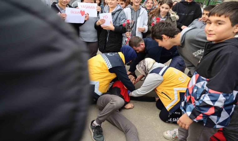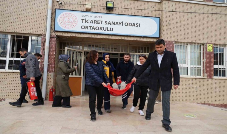 Bafra İlçe Sağlık Müdürlüğü 112 acil ambulans ekibi de yangın tatbikatında görev alarak temsili olarak yaralanan öğrencilere müdahalede bulundu. Öğrenciler ise sağlık ekibine arkadaşlarının rahatsız olduğunu söyleyerek görevlileri arkadaşlarının yanında çağırdı. Görevliler olay yerine geldiğinde ise öğrenciler bir sürpriz yaparak “Acil Sağlık Hizmetleri Günü” dolayısıyla onlara karanfil sundu.