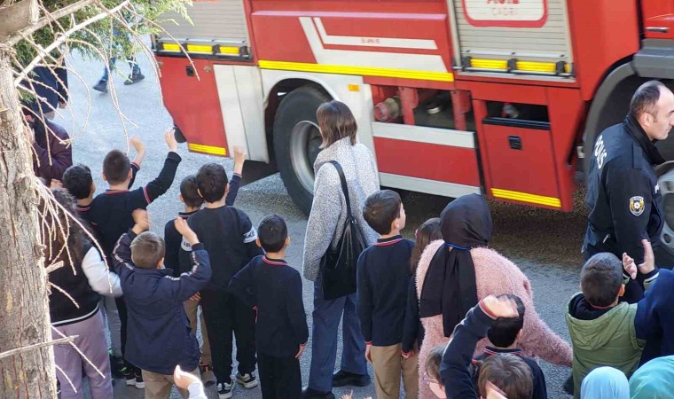 Yangına müdahale eden itfaiye ekipleri okuldan ayrılırken öğrenciler alkış tutup el sallayarak onları uğurladı.