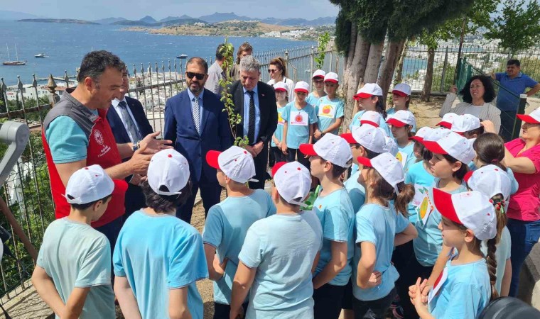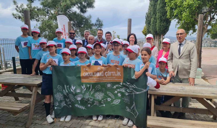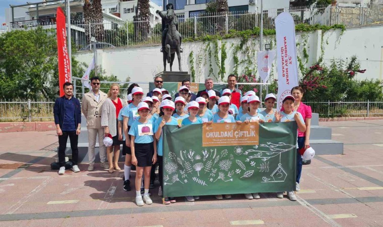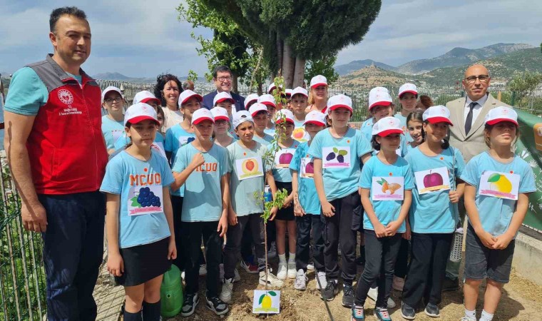 Muğla’nın Bodrum ilçesinde hayata geçirilen “Okuldaki Çiftlik" projesinde 27 öğrenci, okul bahçesine meyve fidanları dikti.