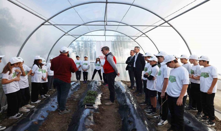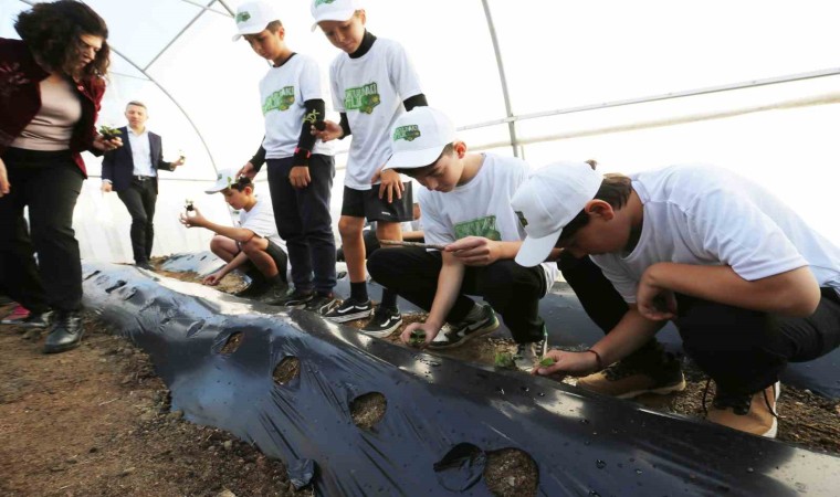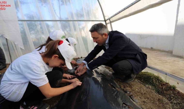 Muğla İl Tarım ve Orman Müdürlüğü’nün İl Milli Eğitim Müdürlüğü ile işbirliği içinde başlattığı ‘Okuldaki Çiftlik’ projesi kapsamında Mahinur Cemal Uslu Ortaokulu’ndaki öğrencilerle bir araya gelen Bodrum İlçe Tarım ve Orman Müdürü Durmuş Çakır, İl Müdürlüğü Koordinasyon ve Tarımsal Veriler Şube Müdürlüğü yetkilileri ile Bodrum İlçe Milli Eğitim Şube Müdürü Türker Yurtsever, okul bahçesinde kurulan seraya çilek ve çeşitli sebze fidanları dikerek ilk can suyunu verdi.