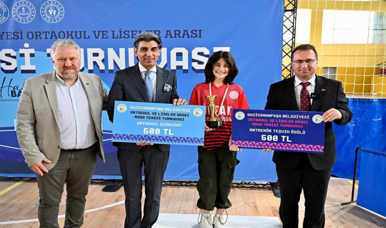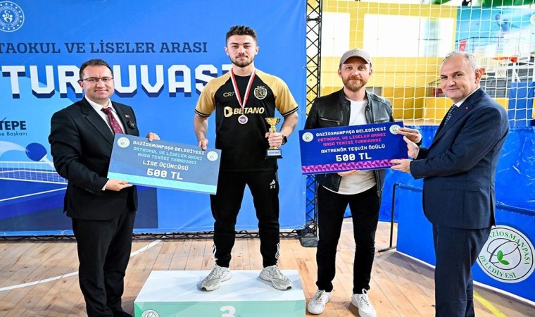 Gaziosmanpaşa Belediyesi tarafından düzenlenen “Okullar Arası Masa Tenisi Turnuvası”nda dereceye giren öğrencilere, kupa ve madalyalarını, Belediye Başkanı Hakan Bahçetepe takdim etti.