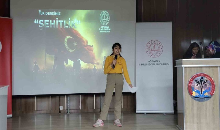 Adıyaman İl Milli Eğitim Müdürü Ali Tosun, Türkiye Petrolleri Ortaokulu’nda yapılan anma etkinliğine katıldı. Saygı duruşu ve bayrak töreninin ardından "İlk dersimiz şehitlik" programı düzenlendi. Kur’an-ı Kerim tilavetiyle başlayan programda, öğrenciler şehitler için şiirler okudu. Adıyaman Milli Eğitim Müdürü Ali Tosun şehitlerin anılmasıyla ilgili yaptığı açıklamada, “Adıyaman’daki tüm okullarımızda ilk dersimizde şehitlerimizi anıyoruz. Bu vatan için, bayrak için, mukaddesat için şehit olmuş, canlarını feda etmiş olan kahraman askerlerimizi anıyoruz. Şehitlerin geride kalan ailelerine karşı sorumlulukları ders olarak işliyoruz” dedi.