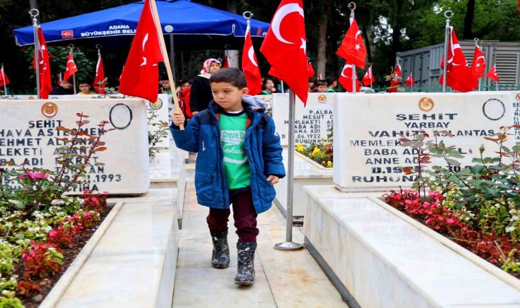 Asri Mezarlık Şehitliği’nde düzenlenen programa Adana Valisi Yavuz Selim Köşger’in yanı sıra kent protokolü katıldı.