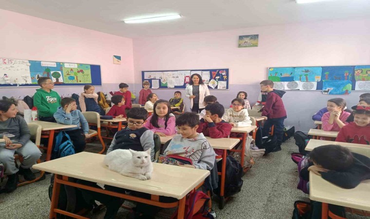 ESKİŞEHİR (İHA) – Eskişehir’deki bir ilkokulda yaşayan ve okul personeli tarafından beslenen 6 yaşındaki Çakıl isimli kedi, her gün öğrencilerle birlikte sınıflara giriyor ve ders dinliyor.