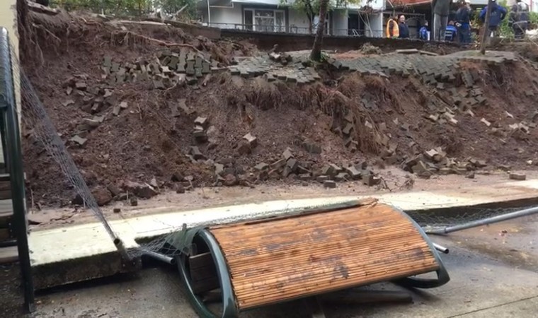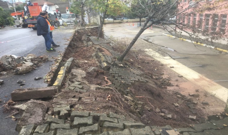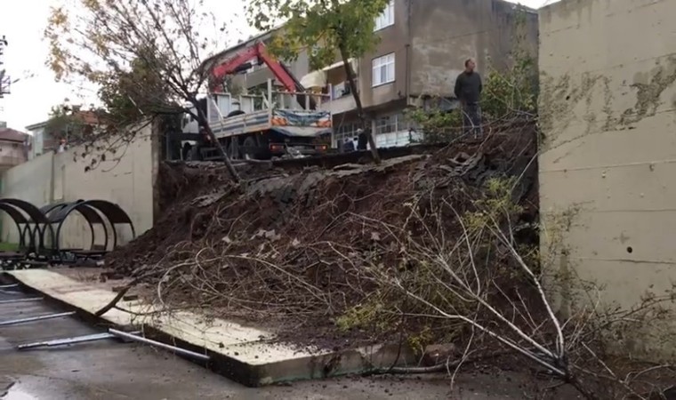 Kocaeli’nin Körfez ilçesindeki bir okulun önünde bulunan 7 metre yüksekliğindeki istinat duvarı gece saatlerinde çöktü.