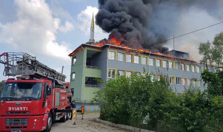 Olay, Samsun’un Terme ilçesi Elmalık Mahallesi’nde meydana geldi. Nazmiye-Ünal Soğancı Ortaokulunun çatısında henüz belirlenemeyen nedenle yangın çıktı. Kısa sürede tüm çatıyı kaplayan alevleri gören çevredeki vatandaşlar olayı 112’ye bildirdi. Bölgeye çok sayıda itfaiye, polis ve sağlık ekibi sevk edildi. Büyükşehir Belediyesi itfaiye araçları ve Terme Belediyesine ait su tankeriyle yangına müdahale edildi. Yaklaşık yarım saat süren müdahaleler sonrası yangın söndürülerek soğutma çalışmaları tamamlandı. Yangında okulun çatısı tamamen kül olarak kullanılamaz hale geldi.