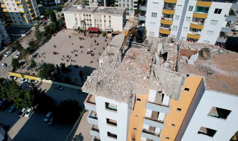 Kahramanmaraş merkezli depremler nedeniyle Adana’da binlerce bina ağır ve orta hasarlı olurken, binaların yıkımı hızla devam ediyor. Merkez Çukurova ilçesine bağlı Yurt Mahallesi’ndeki ağır hasarlı Arık Apartmanı’nın yıkımı nedeniyle de Meryem Mehmet Kayhan Ortaokulu’nun bahçesine moloz parçaları düştü.