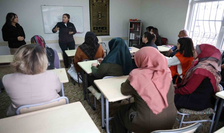 Elazığ’da okuma yazma kursunda eğitim gören kadınlara, polis ekipleri tarafından Kadın Destek Uygulaması (KADES) anlatıldı.