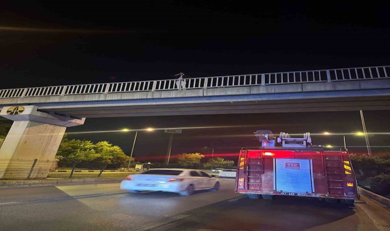 Olay, saat 23.30 sıralarında Antalya’nın Muratpaşa ilçesi Bayındır Mahallesi Gazi Bulvarı üzerinde bulunan üst geçitte meydana geldi. Bir kişinin üst geçitte korkulukların dış kısmında olduğunu gören vatandaşlar ve yoldan geçen sürücüler durumu 112 Acil Çağrı Merkezi’ne bildirdi. İhbarla olay yerine polis, itfaiye ve sağlık ekibi sevk edilirken, ekipler ismi öğrenilemeyen genci eyleminden vazgeçirmek için iletişim kurmaya çalıştı. Bu sırada herhangi bir olumsuzluk yaşanmaması için trafik ekipleri yolu araç trafiğine kapatırken, Antalya Büyükşehir Belediyesi İtfaiye Daire Başkanlığı ekipleri de yola atlama yatağı kurdu.