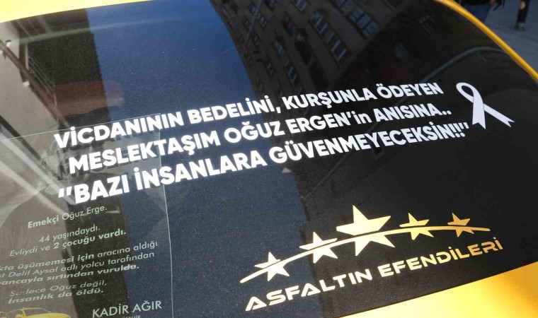Geçtiğimiz günlerde İzmir’de arabasına aldığı şahıs tarafından silahla vurularak öldürülen taksicinin Eskişehir’deki meslektaşları, Oğuz Erge’yi unutmadıklarını belirterek araçlarının arkalarına fotoğrafını astılar.