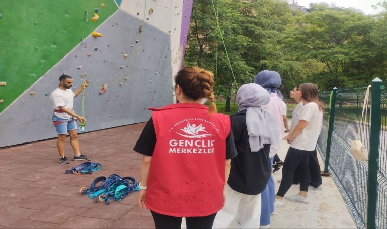 Aydın’ın Efeler ilçesinde bulunan olimpik tırmanma duvarına çıkan Aydın Gençlik Merkezi’ndeki gönüllü gençler, adrenalini yaşadı.