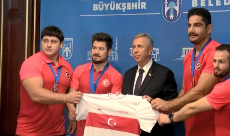 Alper ŞAŞMAZ/ANKARA, (DHA)- Sırbistan’ın başkenti Belgrad’da düzenlenen Dünya Güreş Şampiyonası’nda 4 madalya ve 5 olimpiyat kotası alan milli güreşçiler; Rıza Kayaalp, Taha Akgül, Ali Cengiz ve Enes Başar, Ankara Büyükşehir Belediyesi (ABB) Başkanı Mansur Yavaş’ı ziyaret etti.