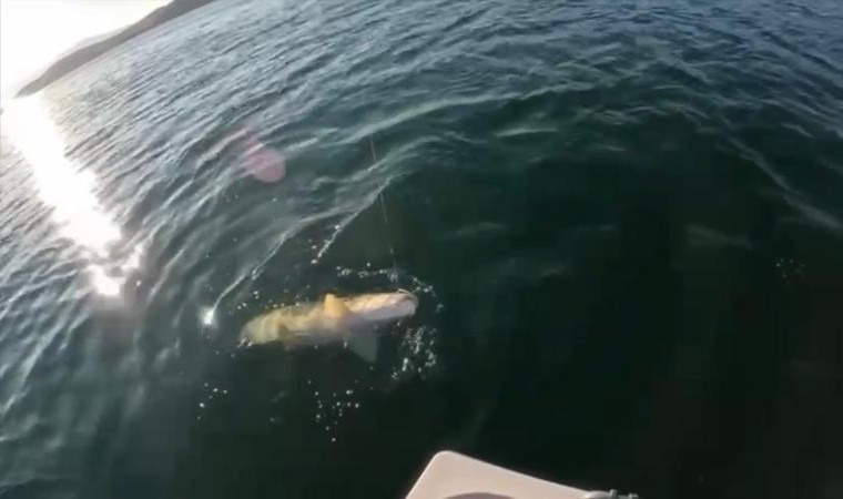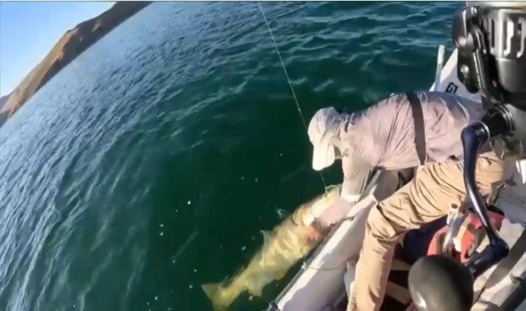 Elazığ’da 3 arkadaş balık tutmak için Fırat Nehri Keban Baraj Gölüne açıldı. Bir süre avlanan arkadaşların oltasına bir anda dev bir balık takıldı. Büyük bir heyecanla balığı çeken arkadaşlar, gördükleri manzara karşısında gözlerine inanamadı. Arkadaşlar, tuttukları balığı tekneleriyle karaya çıkardı. Balığın 157 santimetre uzunluğunda ve 46 kilo 800 gram ağırlığında olduğu öğrenildi.