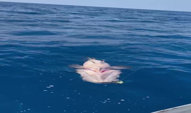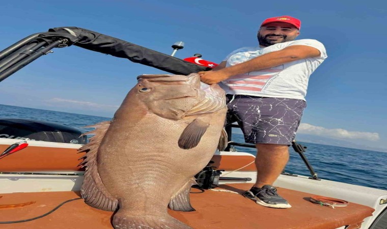 Hatay’da balık avlamak için Akdeniz Körfezi’ne açılan amatör balıkçı Atakan Gözüküçük, yaklaşık 1,5 metre boya ve 45 kilogram ağırlığa sahip devasa balığı oltayla yakalamayı başardı.