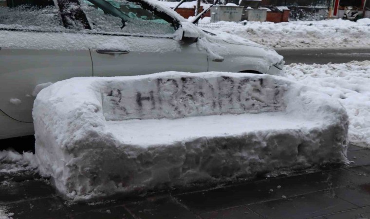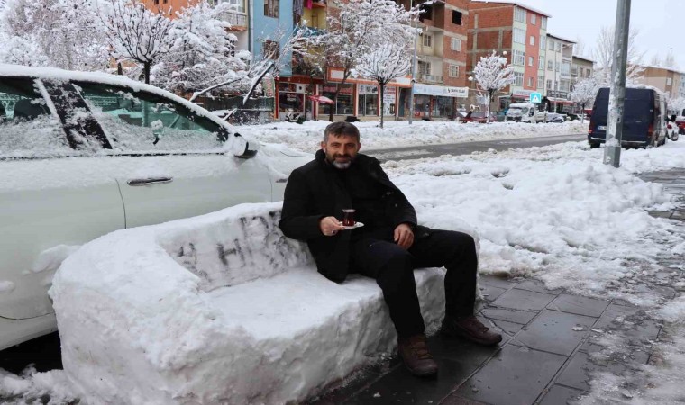 Kar toplamak üzere dışarı çıkan vatandaşlar, ilk başta Çelik’in kardan adam yapacağını düşündü. Ancak, Çelik’in yaptığı şey, herkesin ilgisini çeken bir oturma koltuğu oldu.