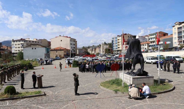 Oltu Hükümet Meydanı’nda bulunan Atatürk heykeline çelenk sunumunun ardından saygı duruşu ve İstiklal Marşı okundu.