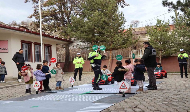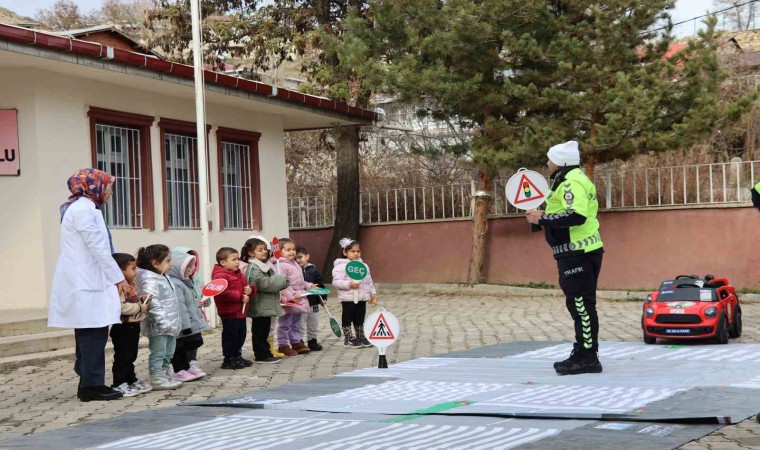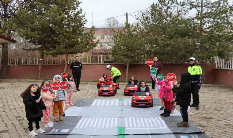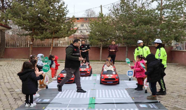 Oltu’daki Karabekir İlkokulu, Vilayetler Birliği Anaokulu ve Oltu Anaokulu’nda öğrenim gören 350 öğrenci, trafik güvenliği konusunda teorik ve uygulamalı eğitim aldı.