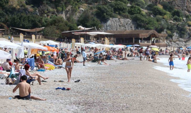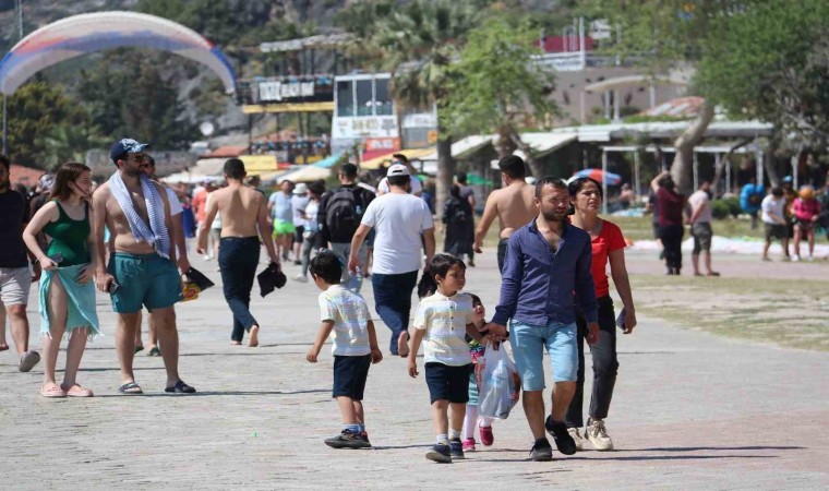 Ramazan Bayramı’nın ilk gününde hava sıcaklığının 27, deniz suyu sıcaklığının ise 19 derece ölçüldüğü Fethiye’de, Ölüdeniz Belcekız ve Kumburnu plajları hareketlendi, trafikte uzun kuyruklar oluştu.