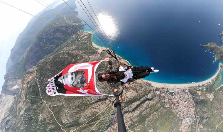 Muğla Fethiye’de Cumhuriyet’in 100. yıl dönümü etkinlikleri çerçevesinde, pilotlar 100 üniversite öğrencisiyle Ölüdeniz’de yamaç paraşütü uçuşu gerçekleştirdi.