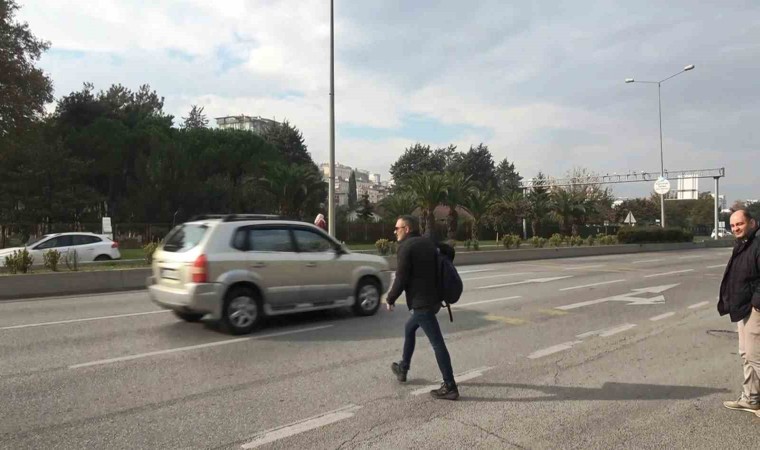 Tehlikeli bir şekilde yolun karşısına geçen Hüseyin Güven ise “Burası çok tehlikeli. Çok sayıda kurumun olduğu bu bölgede bir üst geçit olmalı. Ben emekli dilekçesi vermek için geldim. Yoldan geçerken çok dikkat ederek geçtim. Yetkililerden üst geçit talep ediyoruz” şeklinde konuştu.