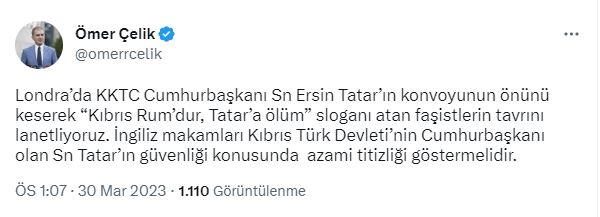 Ömer Çelik: Ersin Tatar'ın konvoyunun önünü keserek slogan atan faşistlerin tavrını lanetliyoruz
