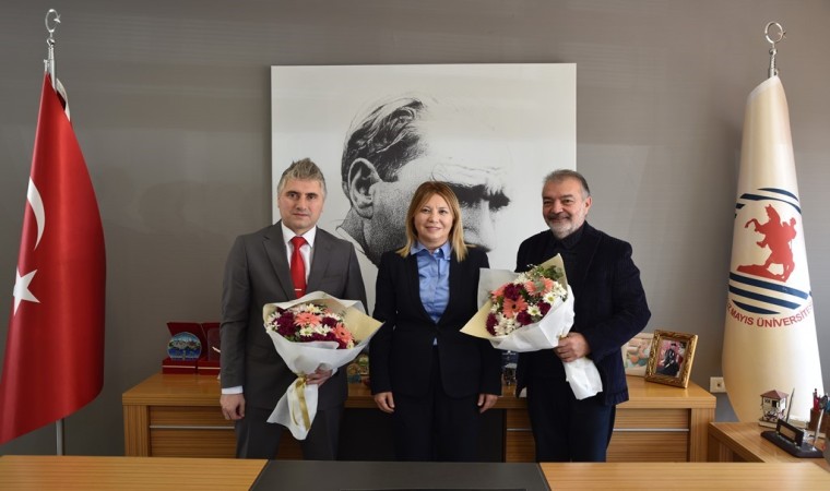 Devir teslim töreninin ardından Rektör Prof. Dr. Fatma Aydın, yeni Dekan Prof. Dr. Mehmet Çetin ile eski Dekan Prof. Dr. Hakan Sağlam’a çiçek takdim etti.