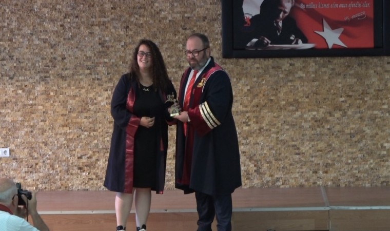 Konuşmaların ardından fakülte birincisi Sahranur Altay, mezuniyet kütüğüne isim plaketini çaktı. Dereceye girenlere ödülleri takdim edildikten sonra mezun olan öğrenciler sahneye çıkarak temsili diplomalarını aldı. Öğrenciler ve protokolle yapılan pasta merasiminin ardından mezun öğrenciler mezuniyet andını yaparak keplerini attı.