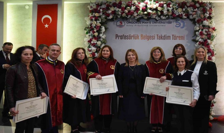 Ondokuz Mayıs Üniversitesi’nde (OMÜ) daha önce profesör ünvanı alan ve belgesini teslim almamış akademisyenlere düzenlen sade bir törenle “profesörlük belgeleri” takdim edildi.