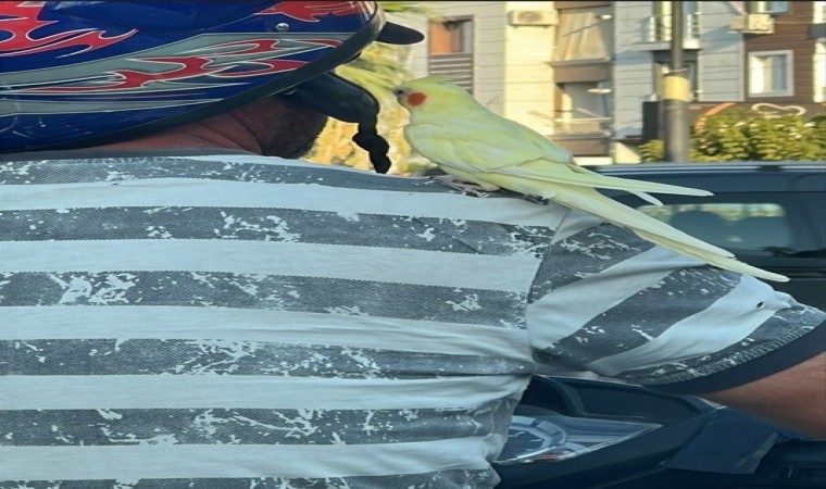 Manisa’nın Yunusemre ilçesinde bir motosiklet sürücüsü omzundaki papağanıyla yolculuk yaptı. Mehmet Akif Ersoy Caddesi üzerinde seyreden motosikletliyi gören sürücüler hayrete düştü. Sahibinin omzunda rahat bir şekilde seyahat eden papağan trafikte ilgi odağı olurken, papağının sahibine olan sadakati şaşırttı.