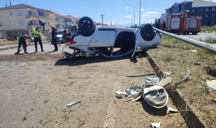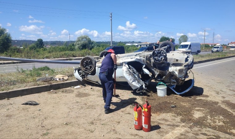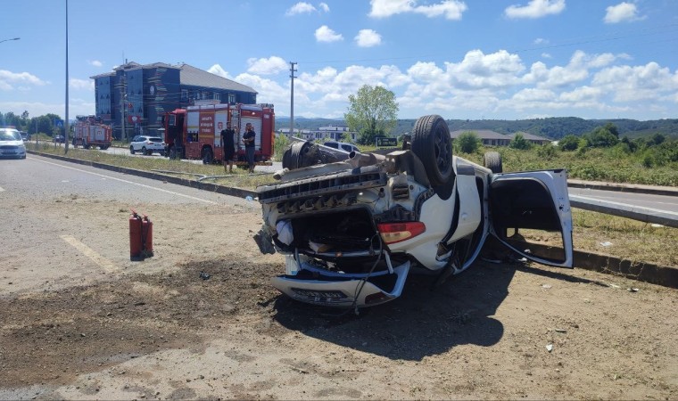 Sakarya’nın Karasu ilçesinde ’patpat’ olarak tabir edilen tarım aracına çarpıp kontrolden çıkarak refüjdeki direğe çarpan otomobil takla attı. Kazada 4 kişi yaralandı.