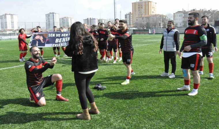 Kayseri Şeker 1. Amatör Küme B Grubu’nda ligin 18. haftasında Özvatan Belediyespor ile Palasspor karşı karşıya geldi. Argıncık Stadı 1 Nolu Saha’da oynanan karşılaşmada Özvatan Belediyespor rakibi Palasspor’u 5-0 yenerek şampiyonluğuna ulaştı. Karşılaşmanın ardından Özvatan Belediyespor’un savunma oyuncusu Mustafa Aydın, taraftarın ve takım arkadaşlarının önünde kız arkadaşı Seher Şahin’e sürpriz evlilik teklifi yaptı. Müsabakayı tribünden izleyen Seher Şahin, maçın ardından saha içine girdi ve Mustafa Aydın’ın açılan, “Sen ve ben bir ömür! Benimle evlenir misin” pankartı önünde diz çökerek yaptığı evlilik teklifine ’evet’ yanıtını verdi. Aydın, aldığı olumlu cevabın üzerine büyük bir mutluluk yaşadı ve kız arkadaşının parmağına yüzüğü taktı. Yapılan evlilik teklifiyle yeşil sahada renkli anlar yaşandı.