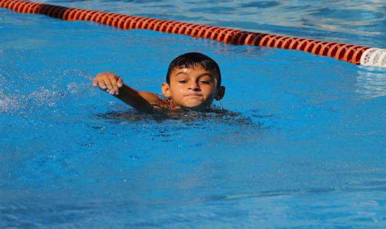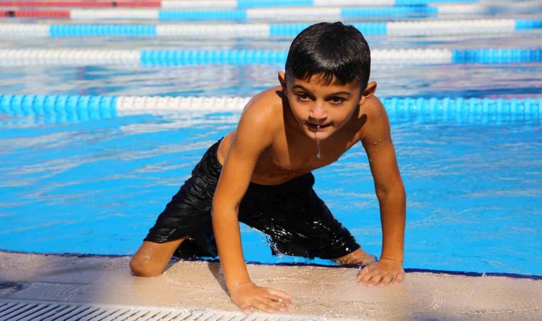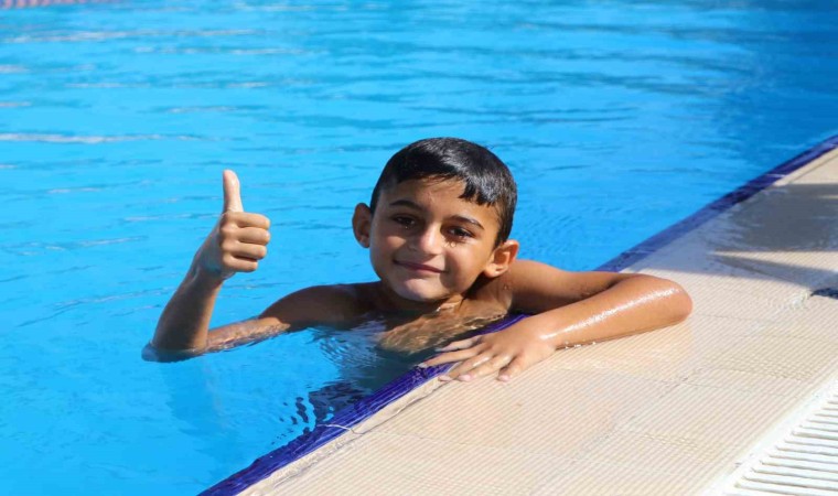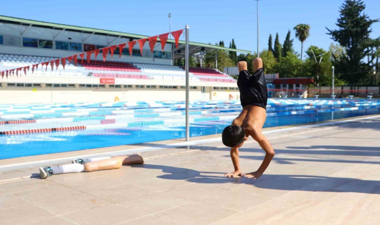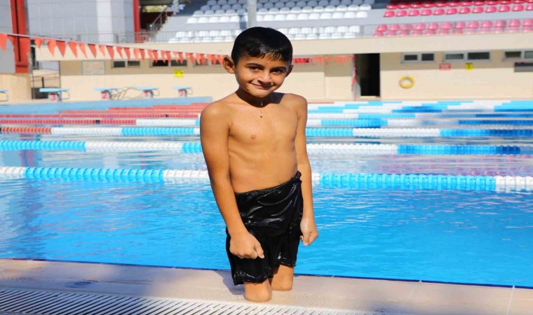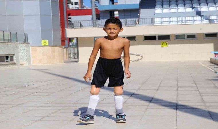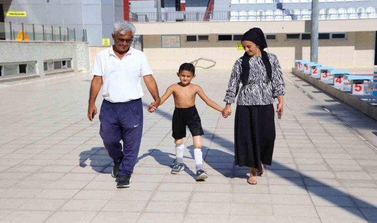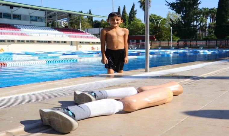 Adana’da enfeksiyon nedeniyle bacakları kesilen ve gelen destekle protez bacaklarına kavuşan 9 yaşındaki Muhammet, şimdi de yüzerek hayata tutundu.