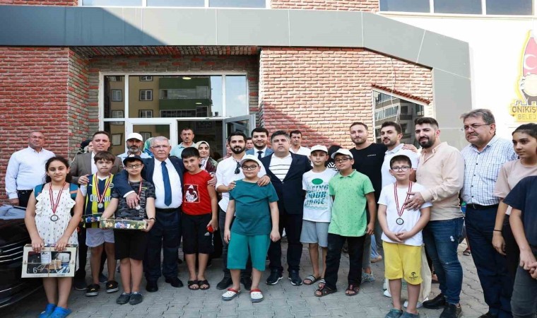 Yüzme kursuna çocuklarını getiren ailelerle sohbet eden Başkan Mahçiçek, sonrasında ise yüzme eğitimi alan kursiyerlere çeşitli hediyeler takdim etti.