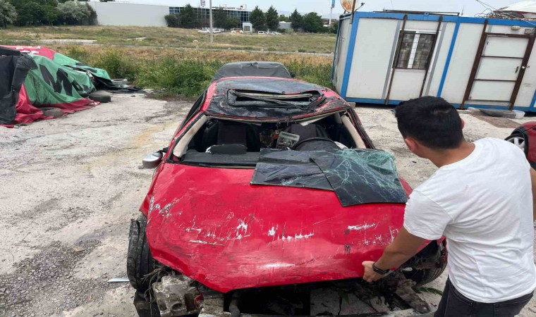 Eskişehir’de yaşayan Berat Kaya (24) idaresindeki 26 AGT 406 plakalı otomobil, çevreyolunda sol şeritte ilerlerken iddiasına göre önüne bir anda orta şeritten gri renkte bir araç önüne manevra yaptı. Yine Kaya’nın iddiasına göre sinyal vermeden önüne kıran araçtan dolayı yavaşlamaya çalışırken araç kontrolden çıktı. Savrulmaya başlayan araç takla atıktan sonra yol kenarındaki kaldırımda ters dönerek durabildi. Hurdaya dönen araçta sürücü Berat Kaya kazadan hafif yaralanarak kurulurken, sağ koltukta yolcu konumunda bulunan M.G. (26) ağır yaralandı. Omurgası kırılan M.G.’nin sağlık durumu ciddiyetini koruduğu öğrenildi.