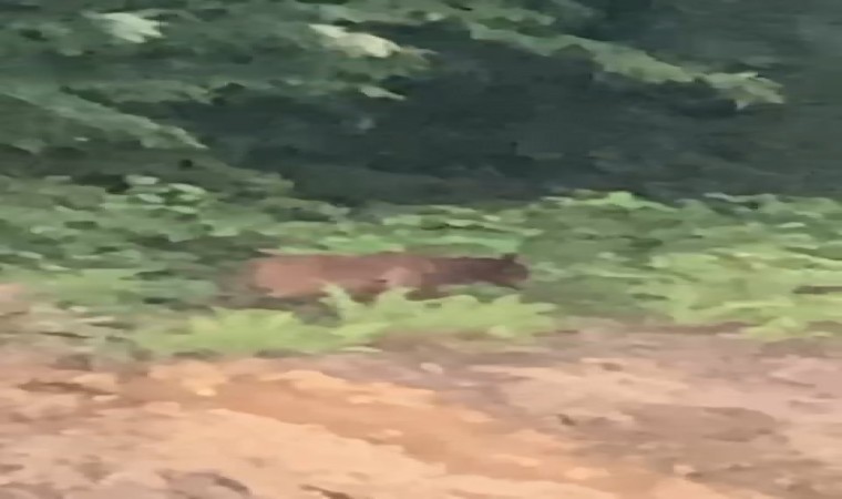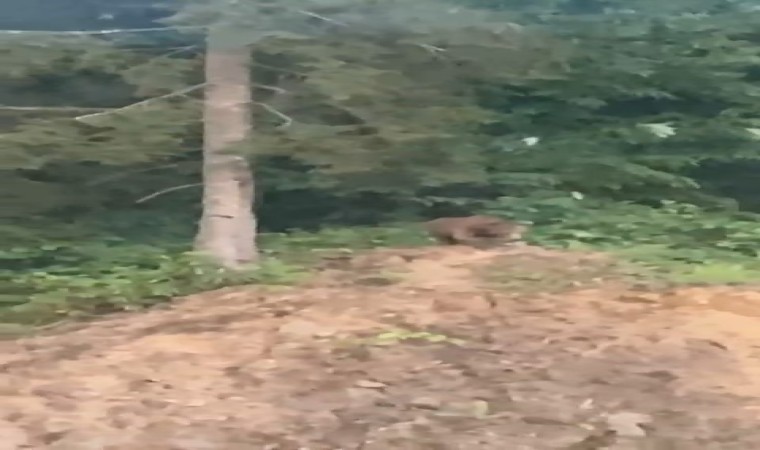 Rize’nin Çayeli ilçesinde bir vatandaş, evinin yakınlarında gördüğü ayıyı ‘Kışt’ diyerek kovmaya çalıştı.