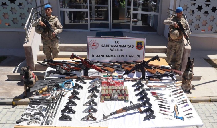 Yapılan aramalarda 1 Kalaşnikof marka otomatik tüfek, 21 ruhsatsız tabanca, 20 av tüfeği, 3 bin 53 tabanca fişeği, 670 av tüfeği fişeği, 25 bıçak, 19 şarjör ve silah yapımında kullanılan muhtelif parçalar ele geçirildi.