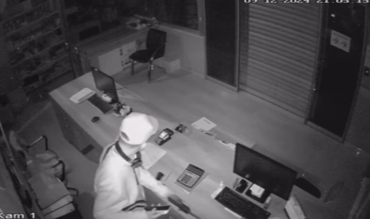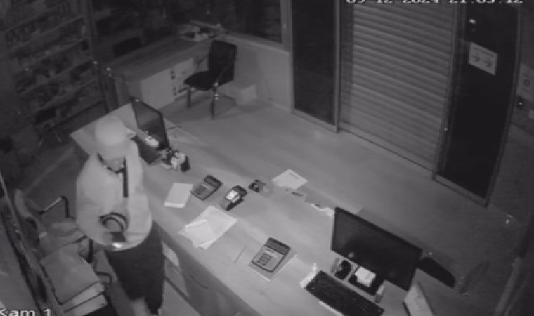 Öte yandan hırsızlık anı iş yerinin güvenlik kamerasına saniye saniye yansıdı. Görüntülerde, iş yerine giren şüphelinin cep telefonunun el feneri ile etrafı incelediği, diğer elinde de yine iş yerine girdikten sonra aldığı havalı tüfekle dolaştığı anlar yer aldı. Rahat tavırlar sergileyen şüphelinin, elindeki telefon ile tüfeği masanın üzerine koyup, kilitli çekmeceyi açtıktan sonra bir miktar parayı alıp, tüfeği bırakarak olay yerinden ayrıldığı anlar görüntülere yansıdı.