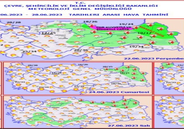 Ordu, dün gece yağmurla başlayan bir dönemin ardından bugün güneşli bir havaya kavuştu. Ancak Meteoroloji Genel Müdürlüğü, 22 Haziran Perşembe günü sabah saatlerinden itibaren Ordu'da çok kuvvetli sağanak yağışların beklediğini açıkladı.