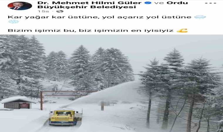 Ordu Büyükşehir Belediye Başkanı Dr. Mehmet Hilmi Güler, sosyal medya hesaplarından çalışmalara ilişkin görüntüleri paylaşarak, “Kar yağar kar üstüne, yol açarız yol üstüne. Bizim işimiz bu, işimizin en iyisiyiz” notunu düştü.