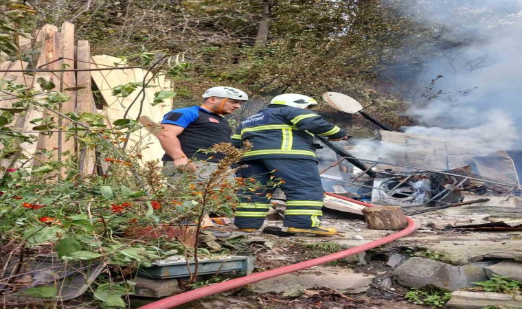 Yangının, odun sobasından kaynaklandığı tahmin edilirken, olayla ilgili inceleme başlatıldı.