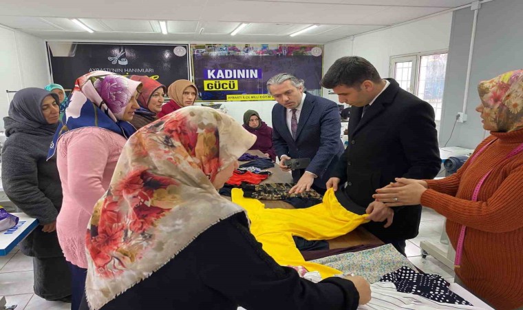 Aybastı ilçesinde dikiş makinelerinin başına geçen kadınlar, İlçe Milli Eğitim Müdürlüğü bünyesinde Halk Eğitim Merkezi’nde açılan kurslarda Filistin halkına destek için üretim yapıyor.